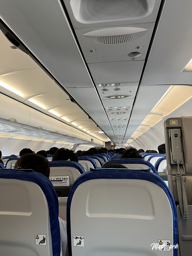 사전에 예약한 좌석은 세 식구가 각각 떨어진 자리였는데 직원분께서 쓱 훑어보시더니 비상구열 좌석에 붙어가는 건 어떠냐고 하셔서 흔쾌히 수락했습니다. 짧은 거리지만 잠시라도 다리를 쭉 뻗고 갈 수 있으므로 개이득.