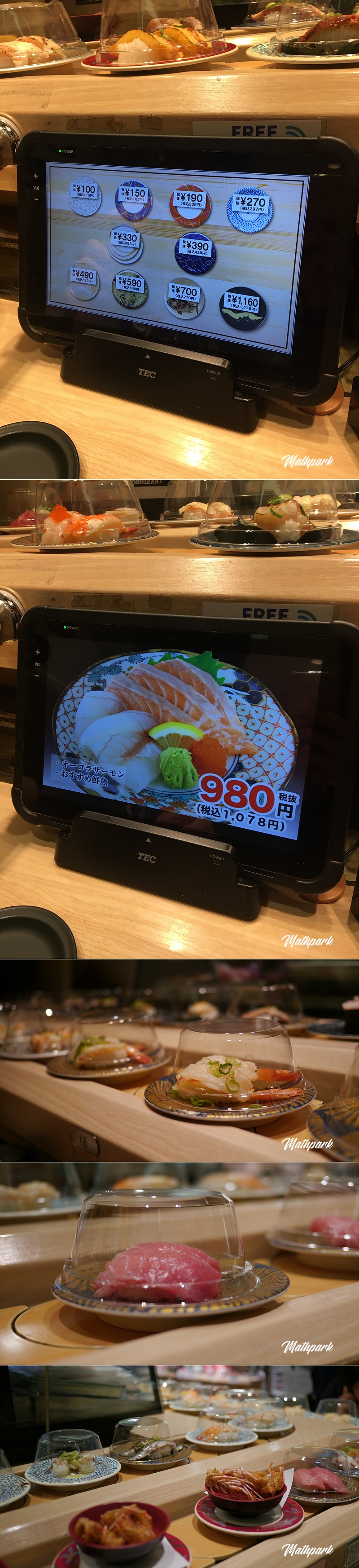 테이블마다 키오스크가 있어 회전 중인 초밥 이외에도 원하는 메뉴를 주문하면 바로바로 제공이 됩니다.