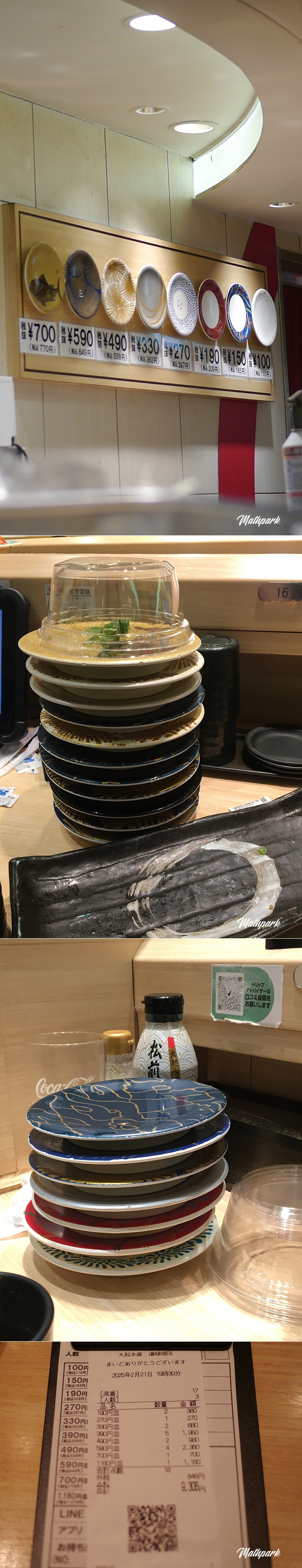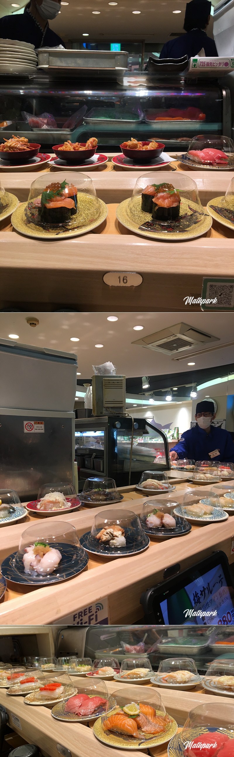 다이키수산에서 회전초밥으로 저녁을 먹기로 합니다. 사람들이 너무 많아 어디든 웨이팅을 감수해야 하는데 저희가 운이 좋아서인지 3인조라서 그런지 이치란라멘에서도 다이키수산에서도 거의 기다리지 않고 바로 자리를 잡을 수 있어서 좋았습니다.
