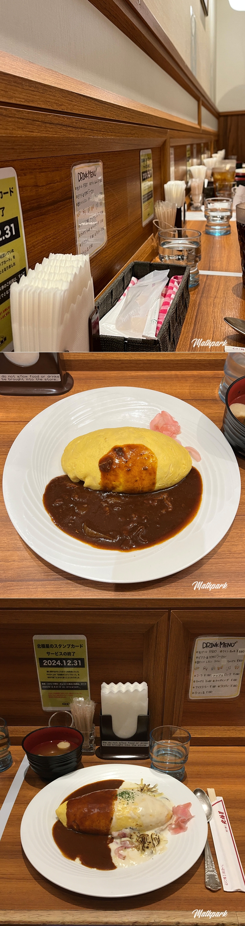 저는 원조 소고기 오므라이스를, 아들녀석은 크림치즈, 딸아이는 더블소스로 선택했습니다. 너무나도 부드럽고 폭신한 달걀에 과하지 않지만 깊은 맛이 담긴 소스가 일품입니다. 게눈 감추듯 한 그릇 뚝딱. 이 글을 쓰는 와중에도 그 맛이 떠오르는군요.