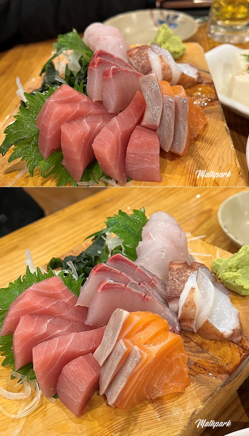 참치를 포함한 5종 생선 모둠 792円. 세금까지 포함한 믿기지 않는 가격입니다.