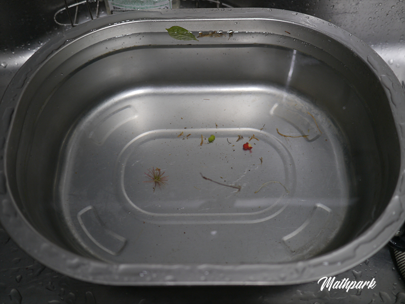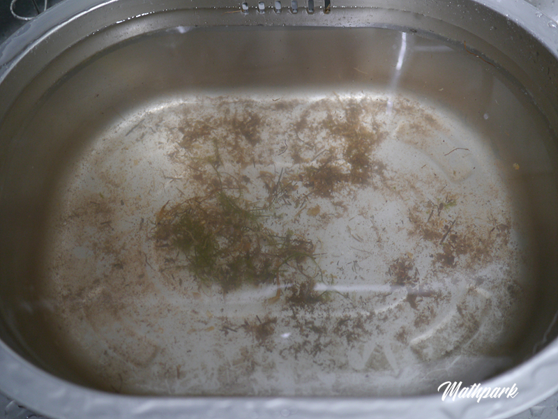 1차 세척 완료. 포장을 풀고 대충 흙을 털어냈음에도 불구하고 이물질이 상당합니다.