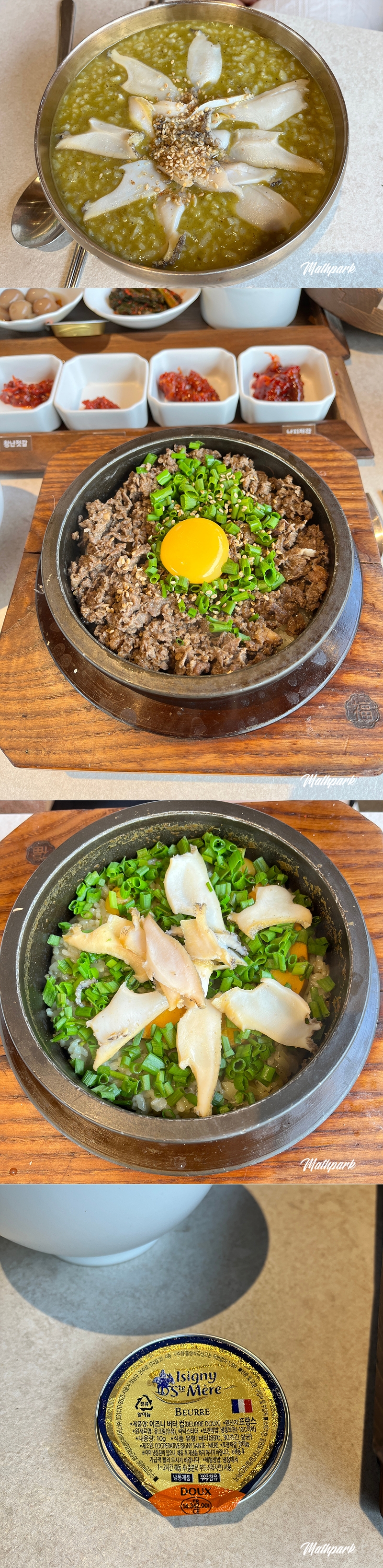 밤새 고생한 아내는 전복죽을, 저는 한우불고기 솥밥을, 딸아이는 전복 솥밥을 선택했습니다. 전복 솥밥은 이즈니 버터를 넣어 비비니 맛이 배가됩니다.