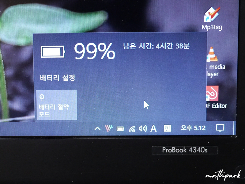 화면 밝기 100% 상태에서 이 정도면 만족할만한 수준입니다. 이제 웬만한 작업은 충전 케이블 달고 다니지 않아도 할 수 있겠습니다.