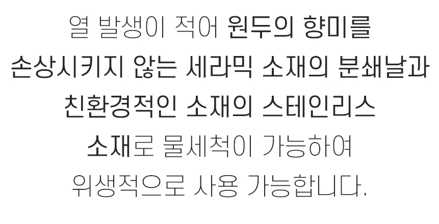 분쇄도를 조절하는 것도 간편하고 분해 및 세척이 쉽다는 것도 선택의 이유가 되겠습니다.