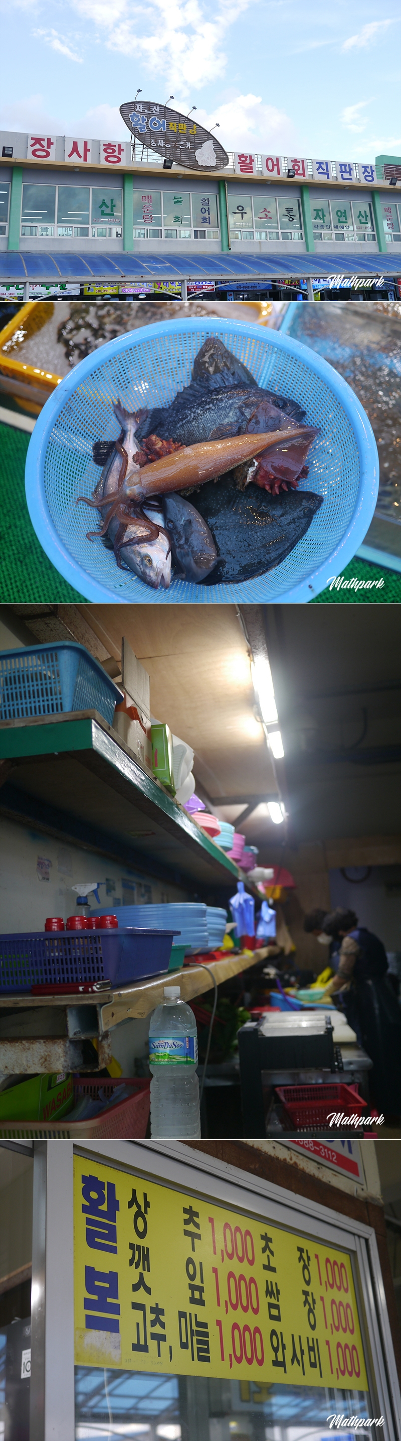 어제는 고기를 먹었으니 오늘은 회를 먹기로 하고 가까운 장사항으로 이동해서 장을 봅니다. 나쁘지 않은 가격에 푸짐하게 골라 담았습니다.