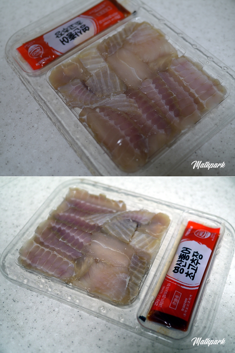 물론 100g 짜리라 딱 1인분 정도밖에 양이 되지 않지만 그래도 이게 어딥니까. 가격은 자세히 모르겠는데 대충 검색해보니 500g에 5만 원선이더군요. 국산 홍어는 역시 비쌉니다.