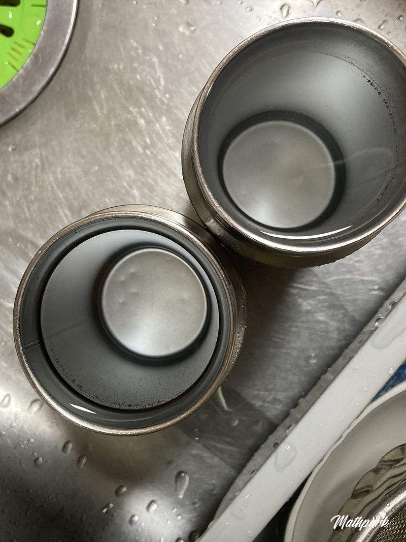 끓는 물(정수기의 온수로도 충분)을 붓습니다. 넘칠 것을 감안하여 절반 정도만.