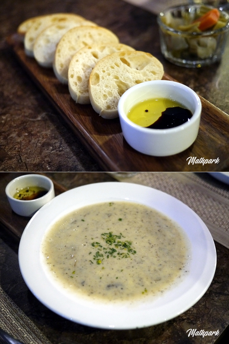 식전 빵으로 나온 치아바타. 사장님이 직접 만드신답니다. 양송이 수프와 감자 수프를 주문했는데 특히 감자 수프가 완전 부드럽고 고소하니 맛있습니다.