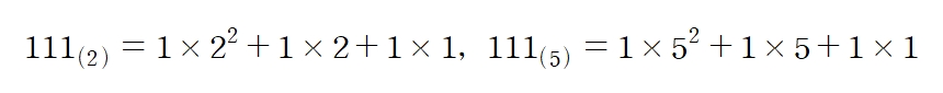자연수 111과 111(2), 111(5)이 어떻게 다른지는 다음과 같이 자릿수의 비교로 충분히 알 수 있다.