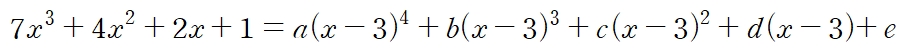 위의 과정을 수식으로 쓰면 다음과 같다. 밑줄 친 부분은 조립제법의 한 부분이다.