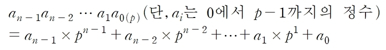 일반적으로 p진법은 p의 값에 따라 2진법, 3진법, …이라 부르는데, 이들은 사용되는 숫자의 종류와 위치에 따른 자릿수가 10진법과 다를 뿐, 숫자의 나열 방식은 동일하므로 10진법과의 구분을 명확히 하기 위해 111(2), 111(5)와 같이 끝에 p의 값을 표기해 놓는다.