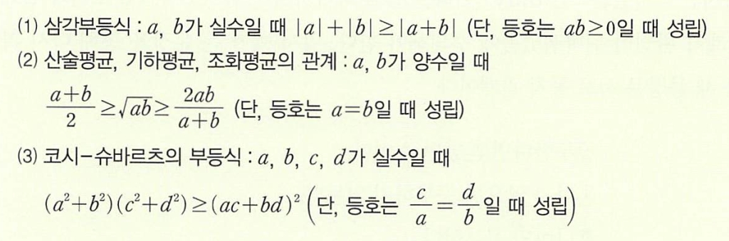 대표적인 절대부등식 세 가지 즉, (1) 삼각부등식, (2) 산술평균, 기하평균, 조화평균의 관계, (3) 코시-슈...