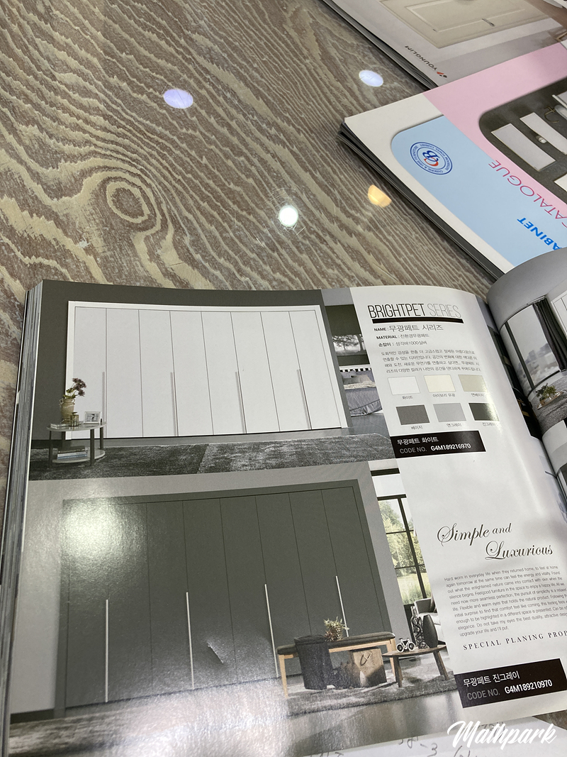 인테리어 업체를 몇 번 방문하여 온갖 종류의 타일과 바닥재와 벽지 등을 차례차례 고르고 붙박이장을 비롯하여 싱크대, 냉장고장, 키큰장, 베란다장, 신발장, 중문 등 큰 가구들부터 선택합니다.