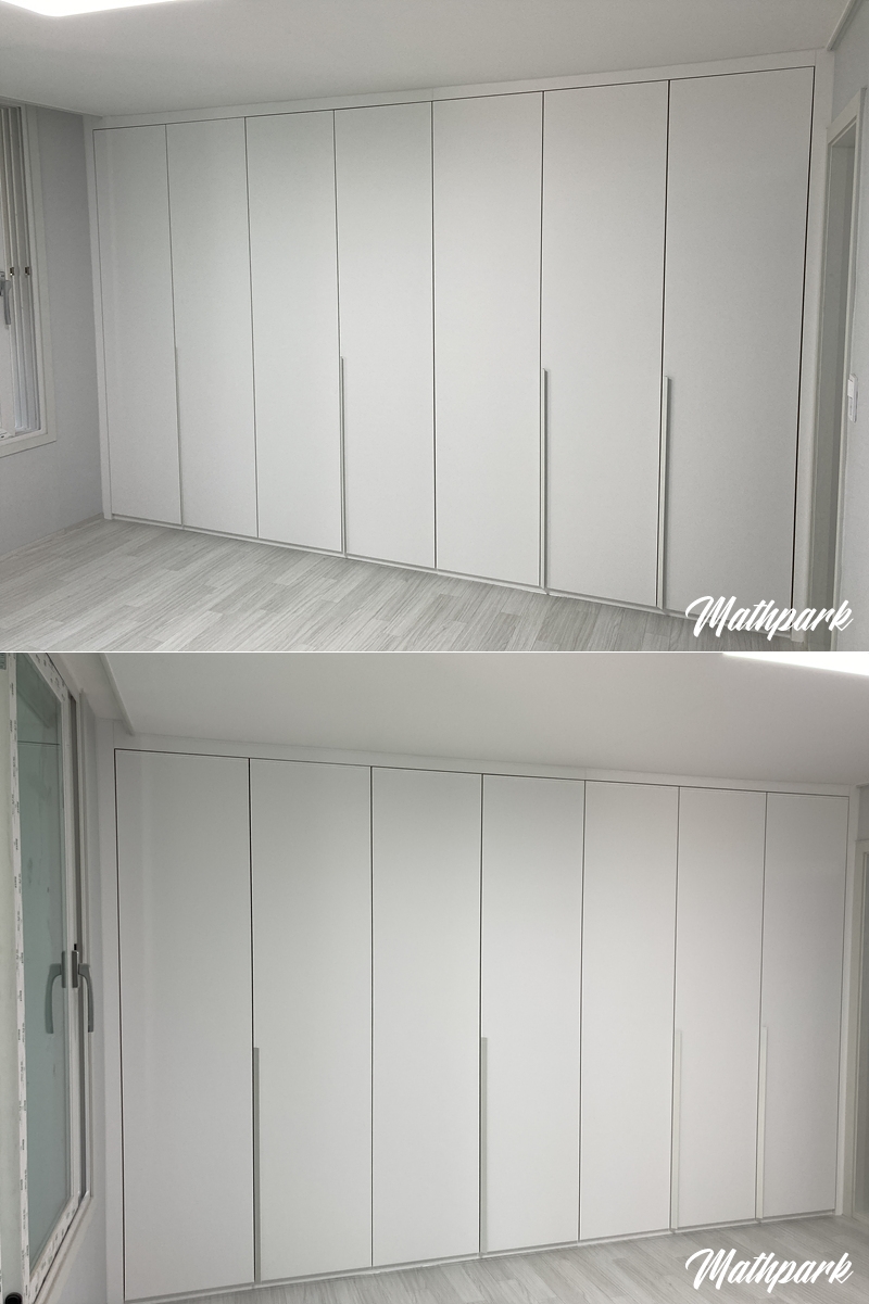 거실 베란다 한쪽에 작은 창고가 있어 자질구레한 물건들을 수납했었는데 그것만으로는 부족하여 반대편 끝에 커다란 장을 짜 넣어 보다 넓은 수납공간을 확보했습니다.