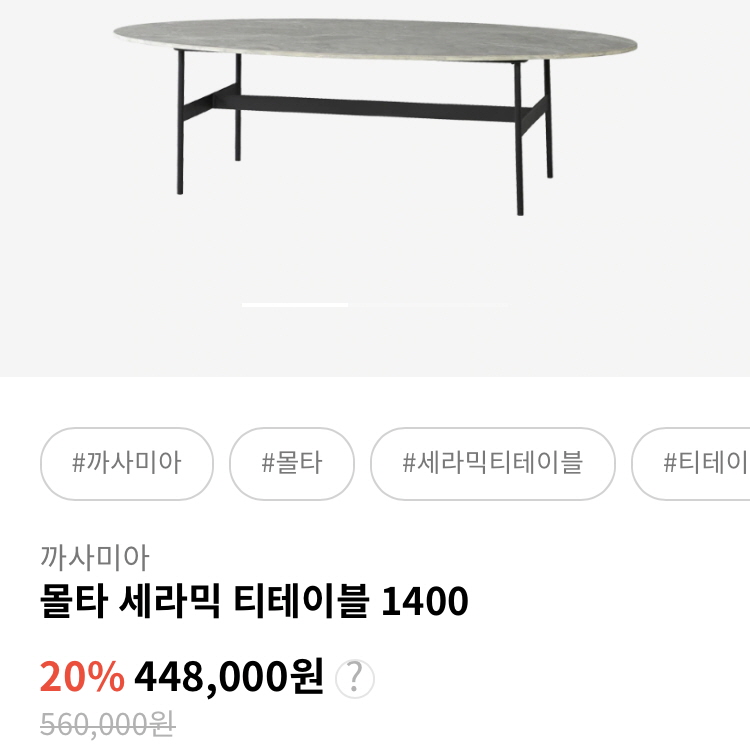 우선 거실 테이블. 까사미아 매장에 갔다가 전시되어 있는 걸 보고 꽂히는 바람에 바로 계약했습니다.