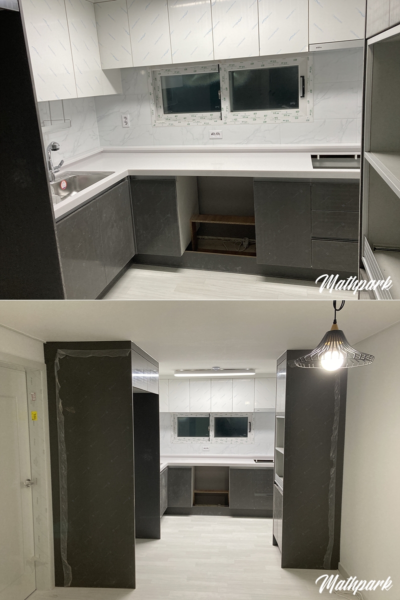 싱크대도 완성이 되어 주방가전제품들을 빌트인 할 준비가 되었습니다.