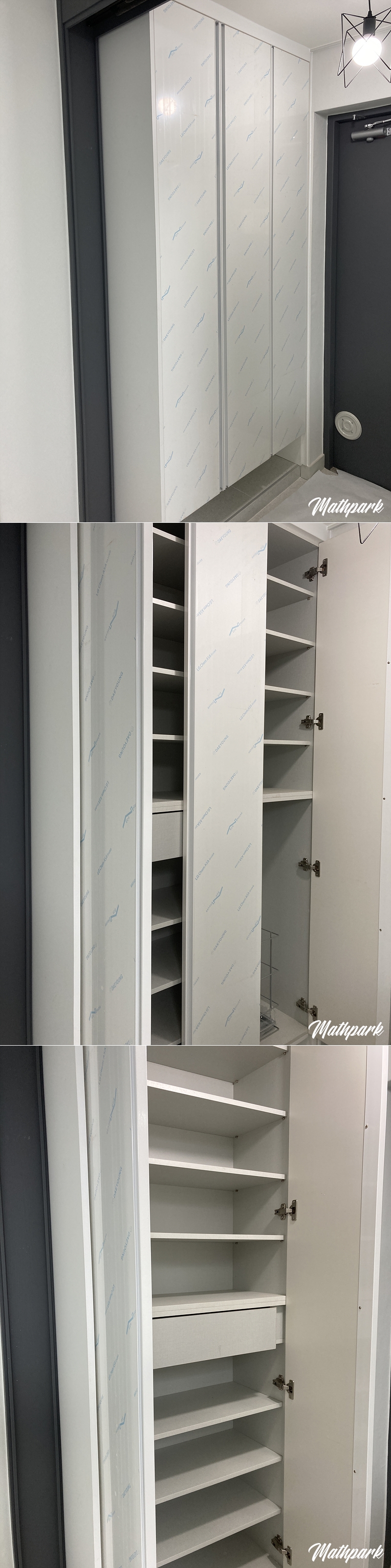 큼지막한 신발장도 현관에 짜넣어졌습니다. 신발장 아랫부분에 조명이 들어오는데 역시 서비스로 달아주셨습니다.