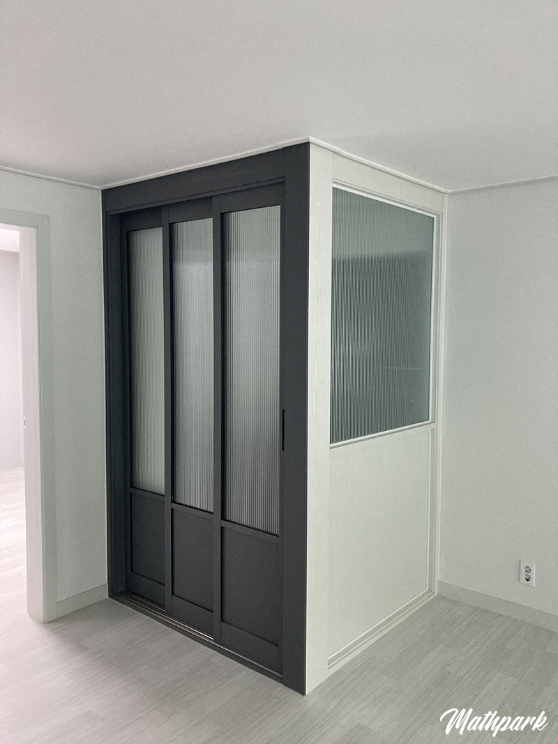 식구들이 가장 원했던 중문 설치도 깔끔하게 완성되었습니다. 실물이 훨씬 마음에 듭니다.