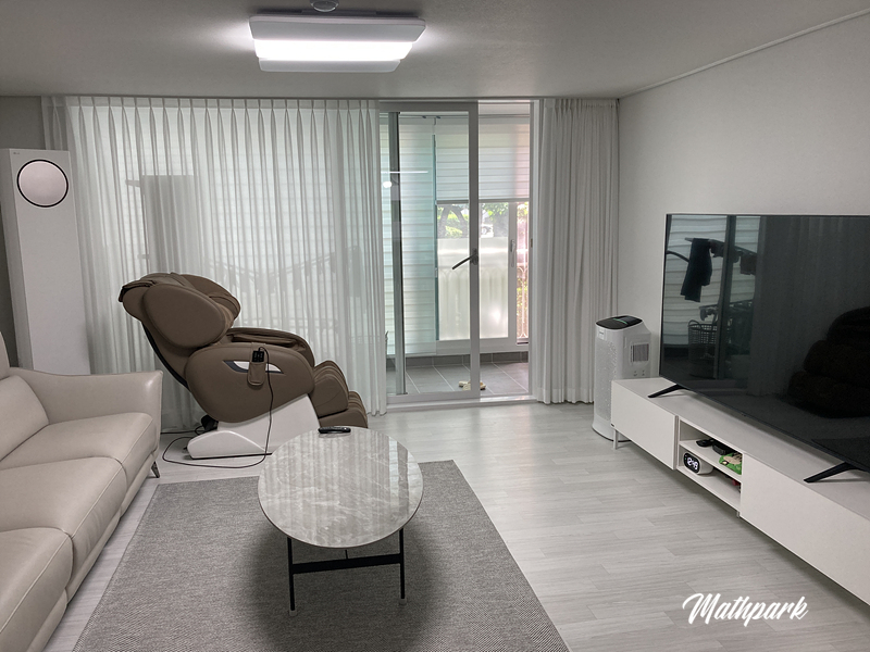 소파와 티테이블과 안마의자도 제자리에. 안마의자의 색깔만 튀는 것이 보기 싫지만 더 이상은 무리입니다.