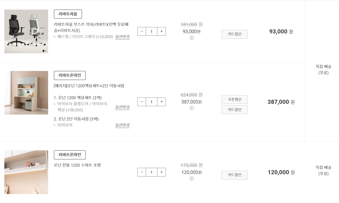 가전제품은 다 골라놨는데 소파를 제외한 가구들은 아직 미정이라 인테리어 하는 동안 틈틈이 매장에도 방문하고 온라인으로도 견적을 뽑아 주문 들어갑니다.